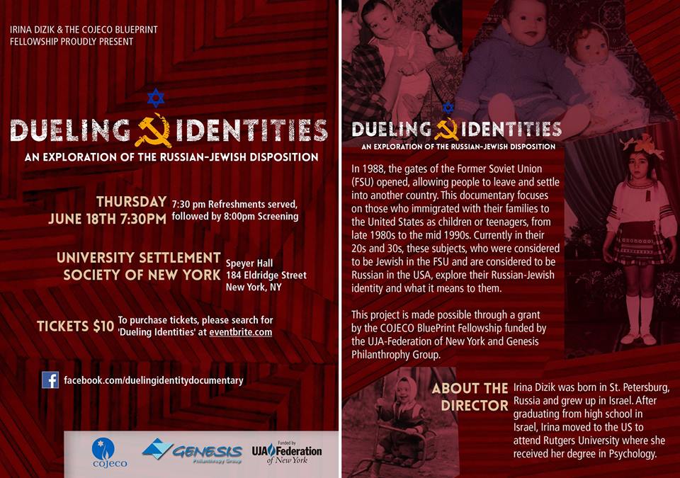 A documentary exploring the Russian-Jewish identity through a series of interviews with subjects who immigrated to the US in the early 1980’s-mid 1990’s as kids or teenagers and are currently in their 20’s and 30’s.