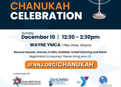 Northern New Jersey Community Chanukah Celebration Sunday, December 10th, @12:30PM @ Wayne Y, 1 Pike Drive, Wayne, NJ COJECO is excited to partner with the Jewish Federation of Northern NJ, the Wayne Y, Congregation Shomrei Torah of Wayne, and Temple Beth Tikvah on this Community Chanukah Celebration. Join us for bounce houses, donuts, crafts, dreidels, […]