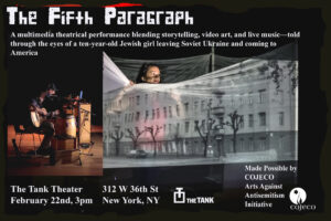 The Fifth Paragraph is a multimedia performance that blends story-telling, video art, and live music. It tells the story of immigrating from Soviet Ukraine to the U.S., right before the collapse of the Soviet Union. It is told through the eyes of Olia’s 10-year-old self. Olia Toporovsky is deeply grateful to present this work with […]